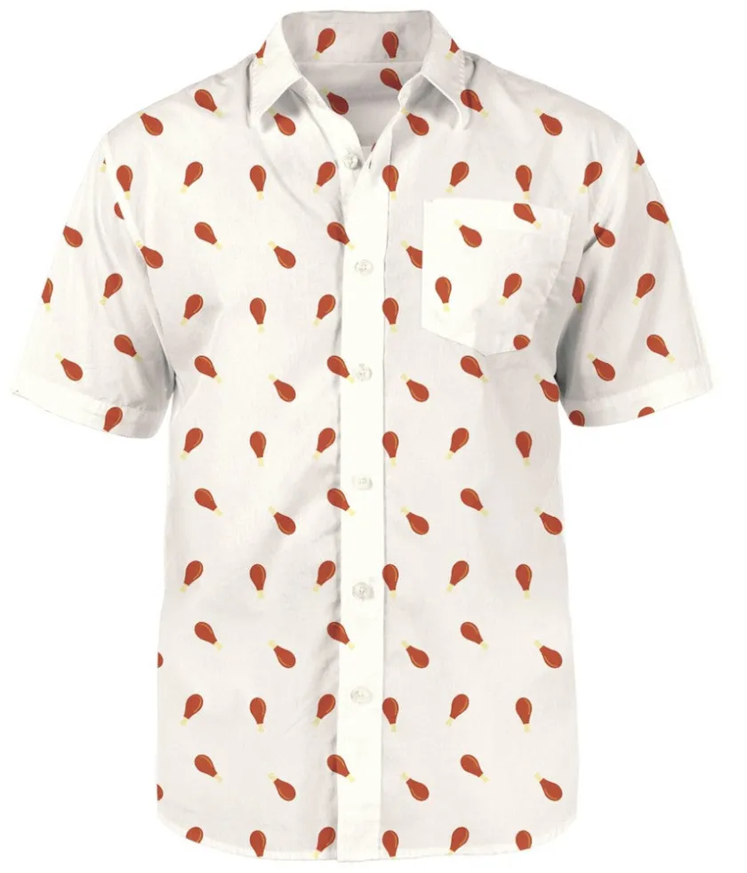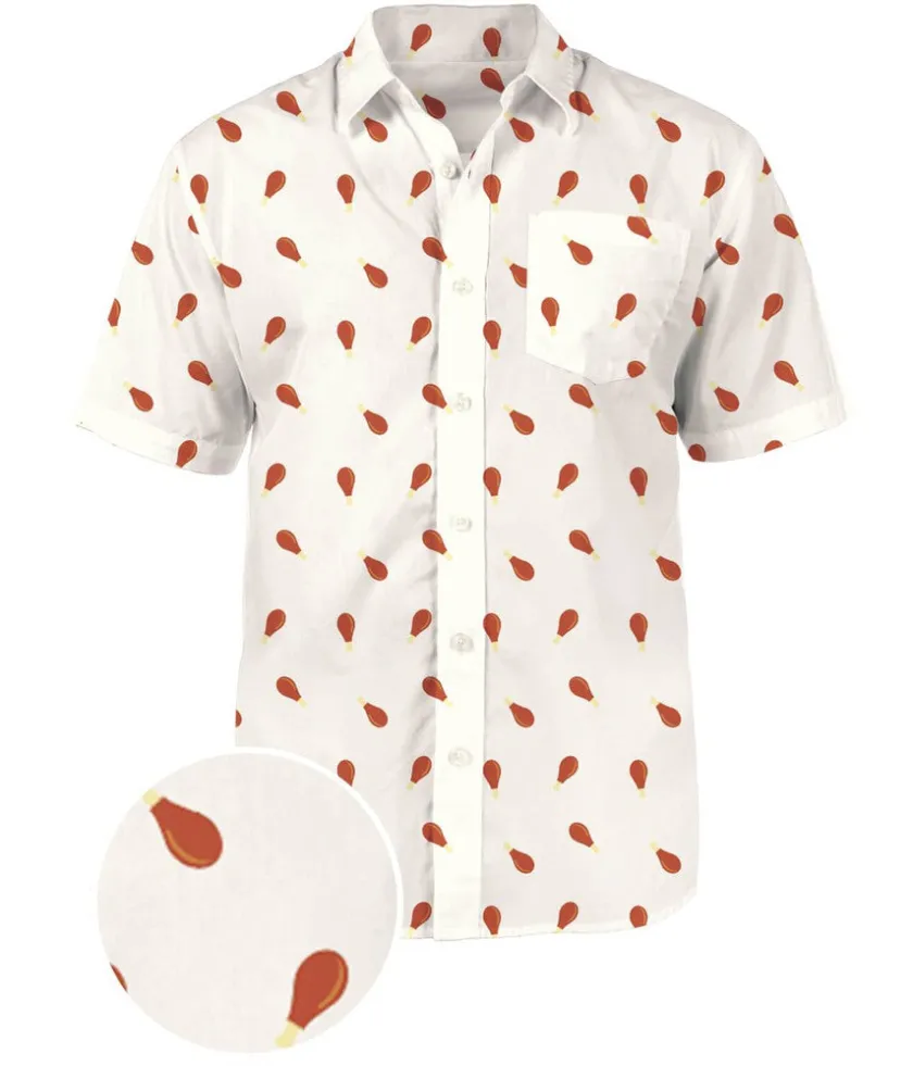 Tis the holiday season for a little themed dressing. Nobody specified the theme though, right? Make Thanksgiving your own with your very own festive take on the Hawaiian shirt. This Men’s Turkey Drumstick button down shirt is a subtle nod to the greatest bird on earth. From afar, it’s just another patterned shirt, but up close, your buddies will be clamoring to put cranberry sauce on it. Maybe don’t let them though. It is white.