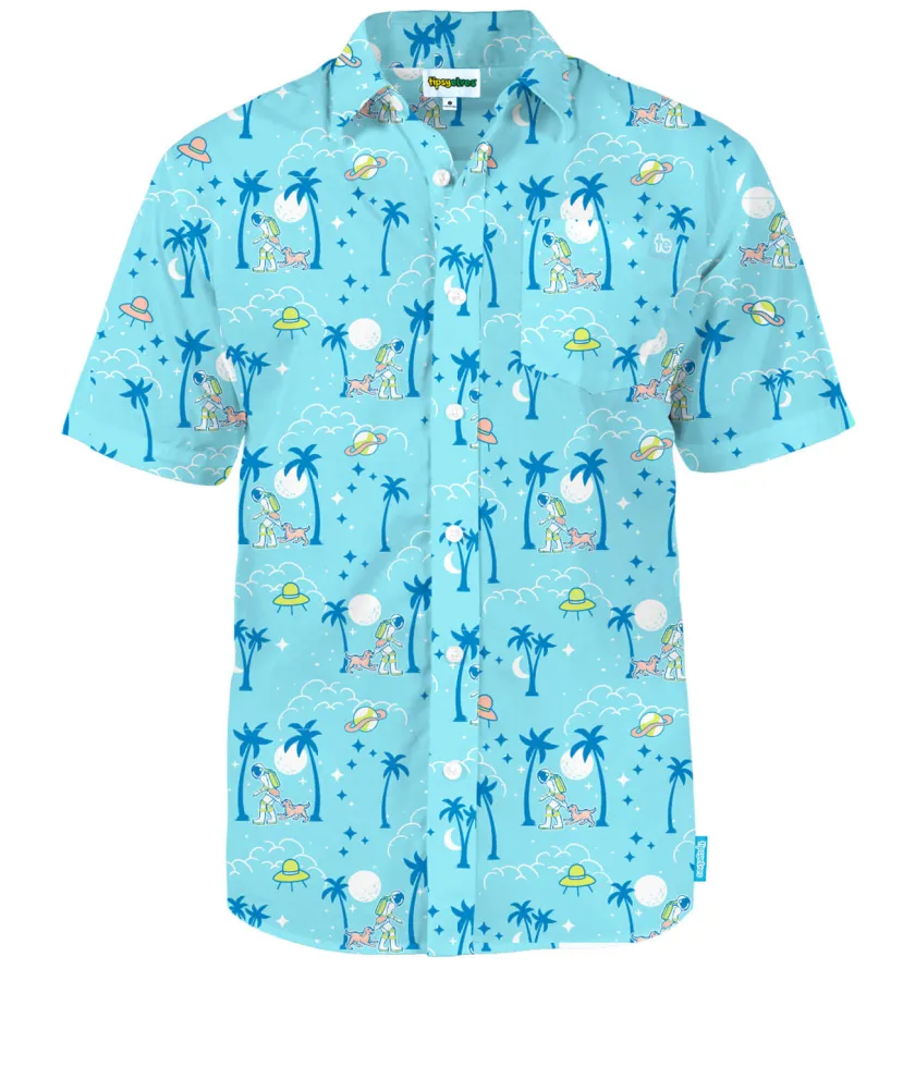 Are you a moon half empty or moon totally full kind of guy? Unfortunately, doesn’t matter which way you look at this one – you’re getting the whole dang thing. We may have faked the moon landing, but there’s no mistaking what you’re looking at here in the Men’s Full Moon Hawaiian Shirt. Yep, there’s palm trees up there, too. One man’s paradise.