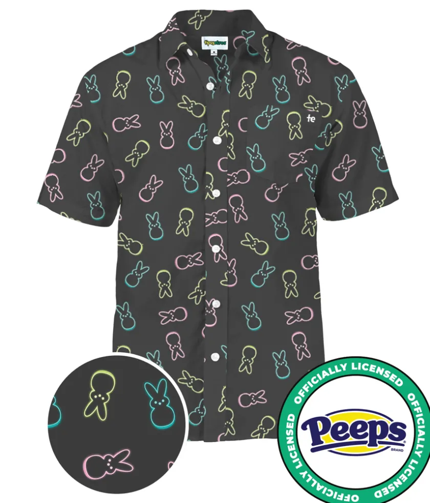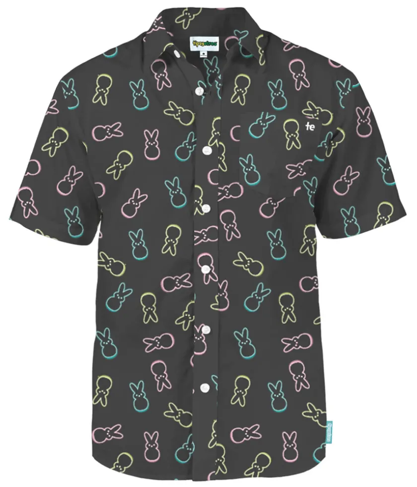 Typically known for their hops, Bunnies have been hiding something in their fluff for long enough – the highlights. The neon highlights, to be specific. Consider the neon PEEPS® Bunny Shape outlines on the Men’s PEEPS® Neon Bunnies Button Down Shirt to be the aura of the adorable PEEPS® candies that we love so dearly. Each has their own unique personality, giving us equal amounts of sugary joy.