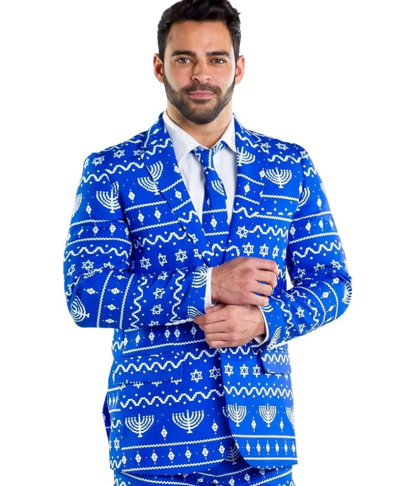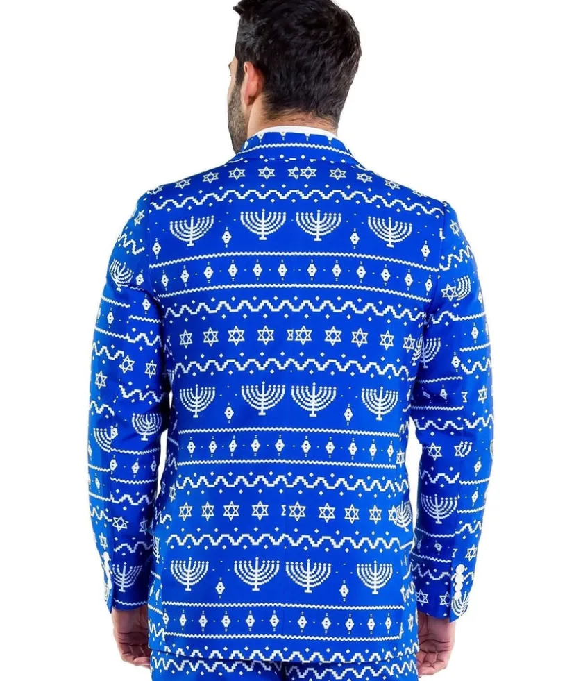 If you’re looking to light up your next Hanukkah event then this men’s lit menorah blazer with tie combination is perfect for you.