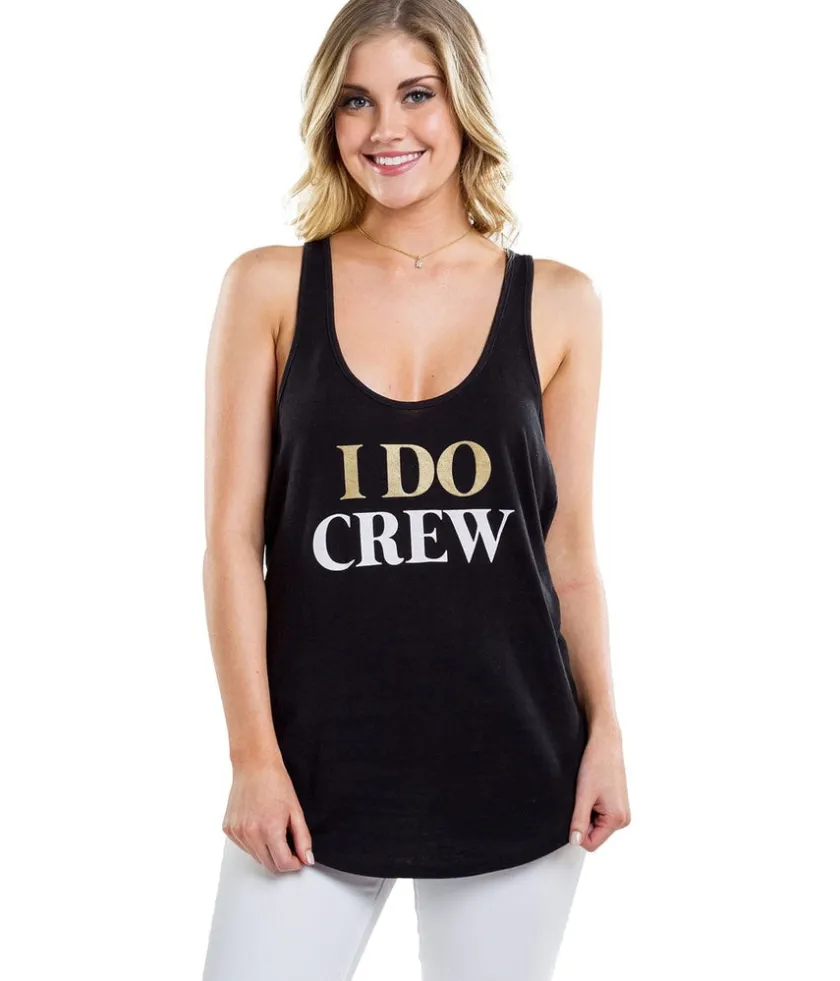 The bride isn’t the only one who gets to look good. Suit up every babe in your bridal squad in one of our Women’s Black I Do Crew Tank Top.