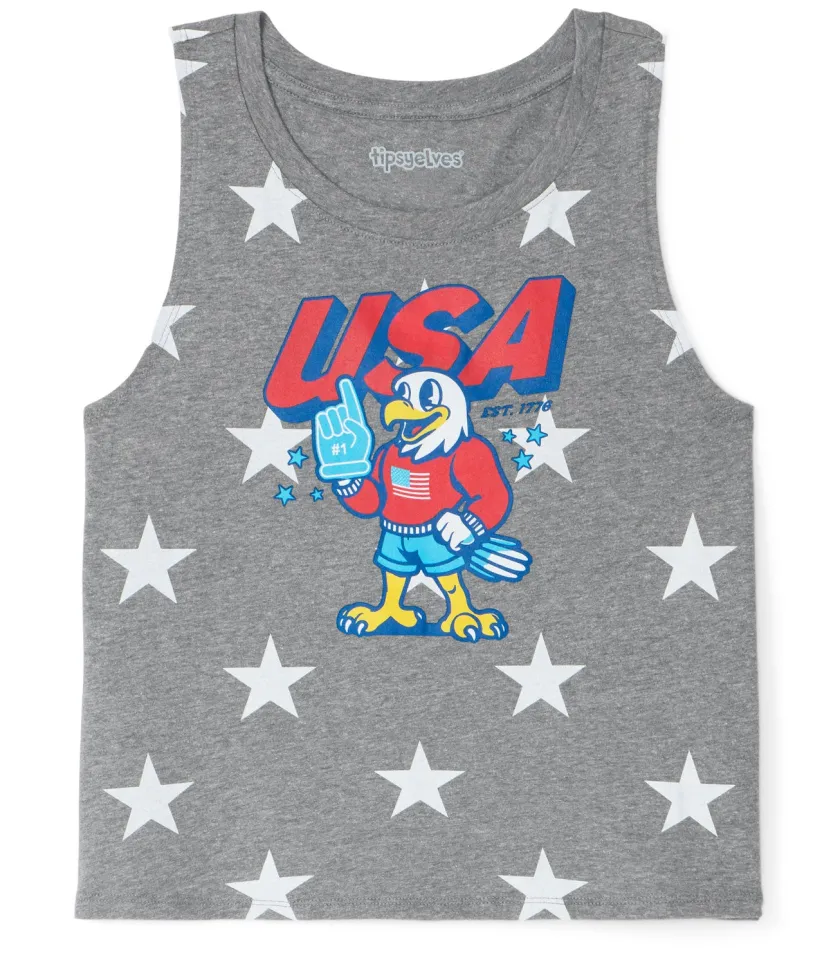 Eagles and attitude—what more do you need? The Cawtriotic Cropped Tank Top puts a fierce spin on Fourth fashion with a soaring graphic and a breezy cropped fit. Rock this bird of liberty while grilling, chilling, or turning heads at the local fireworks fest. Soft fabric and a flattering cut make it a wardrobe must for any party patriot. You bring the party—this top brings the ‘Merica.